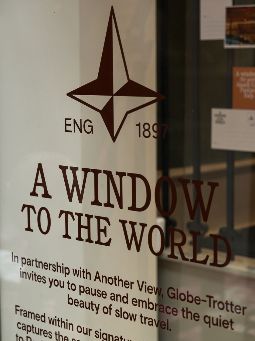 この共有された価値観が形になったのが、「A Window to the World(世界への窓)」と題した最新のウィンドウ・インスタレーションです。グローブ・トロッターとAnotherviewのコラボレーションによって誕生した本作は、移動だけではない“旅の本質”──すなわち、内省や記憶──への静かな気づきを促します。