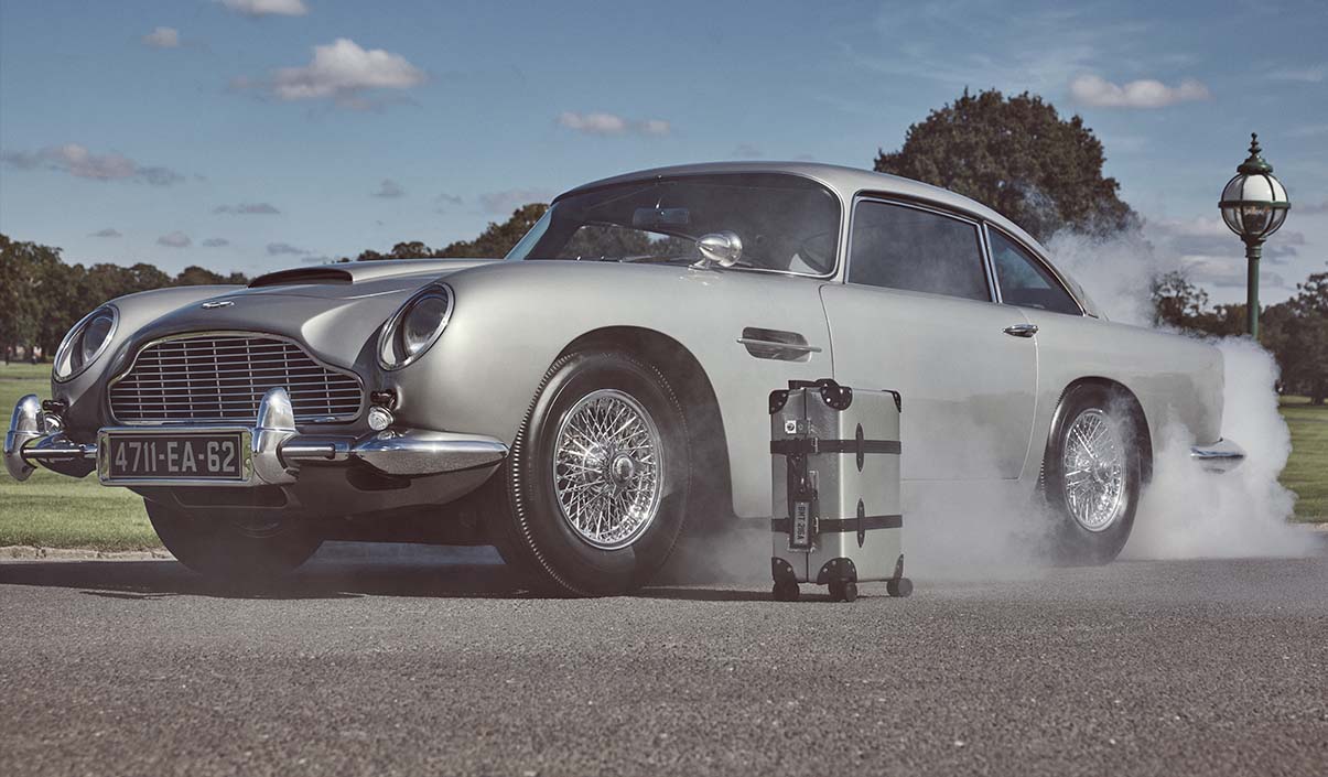 ジェームズ・ボンドを象徴する車、1964年公開の映画『007/ゴールドフィンガー』に登場したアストンマーティンDB5から着想を得たラゲッジコレクション。