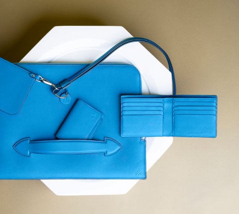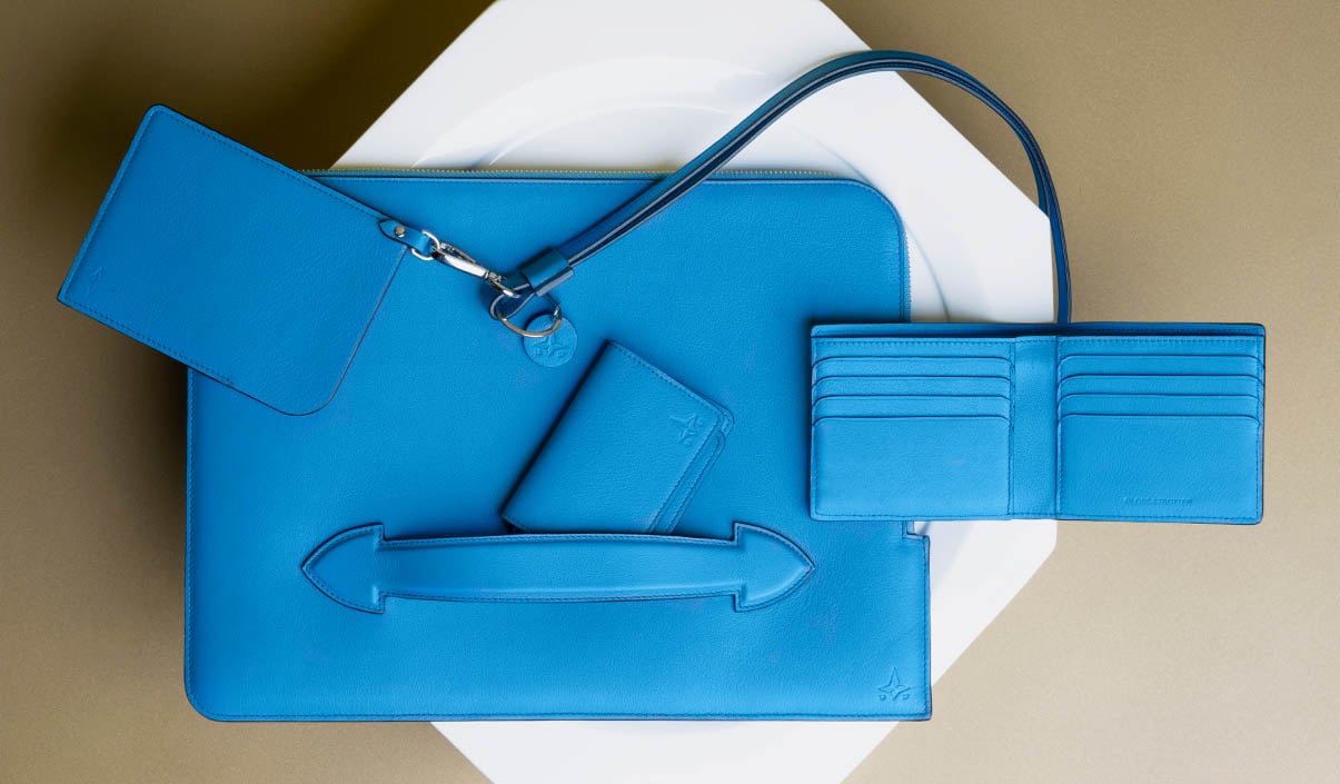 上質なタンブルカーフレザーを使用し、美しくソフトな質感に仕上げたこのコレクションでは、グローブ・トロッターのスーツケースのディテールや、カラーパレット、旅の歴史と共に登場するアイコンにインスピレーションを得て誕生いたしました。