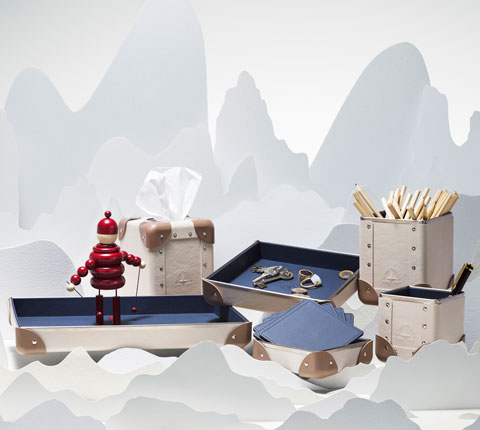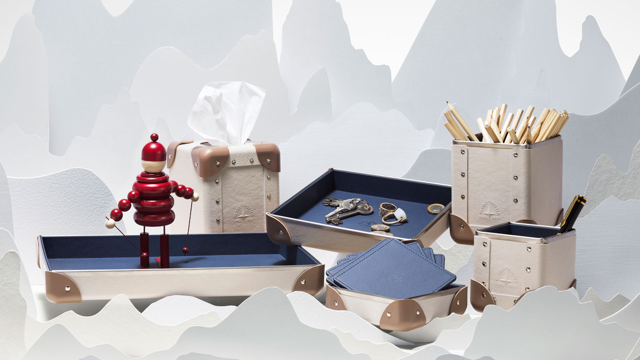 レザートレイやティッシュボックス、コースター、丁寧に織り上げられたブランケットに至るまで、すべてのアイテムにグローブ・トロッターのクラフツマンシップとタイムレスなデザインが息づいています。