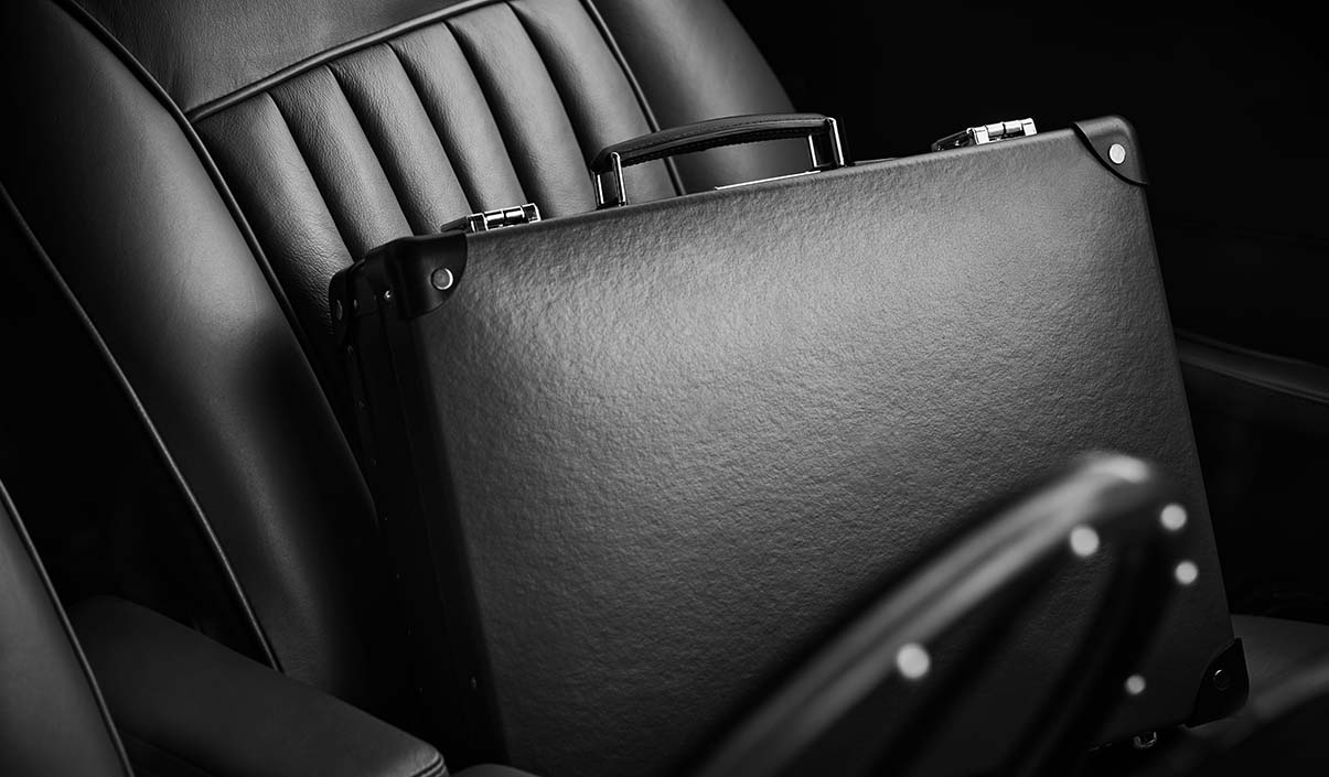 【復刻生産】2012年に発売された『007/スカイフォール』のキャリーオンスーツケースは、英国の気品に満ちた究極のマリアージュ コレクションです。 グローブ・トロッターを象徴するヴァルカン・ファイバーに、グレインレザーをあしらったオールブラックのボディ、クロームパーツのアクセント。 ライニングには、007の象徴的な銃口柄(ガン・バレル)をデザインしたジャカード織りのファブリックが施されています。