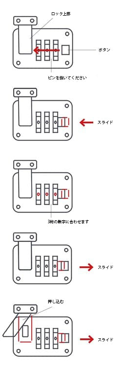 4. セットしたダイヤルが動かないように注意しながらボタンを離してください。こちらで希望する数字の組み合わせでロックが開くように設定されました。ケースを開く