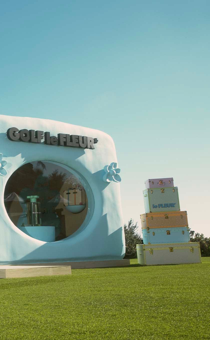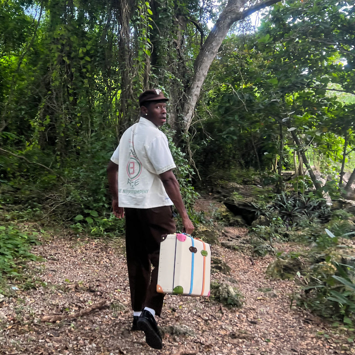 2021年12月。マリブ(カリフォルニア)の無数にある丘の頂上でGOLF le FLEUR*の最新コレクションが発表されました。タイラーの最新アルバム『Call Me If You Get Lost』での、受け継がれるスーツケースと共に世界を旅するようなイメージを体現しています。