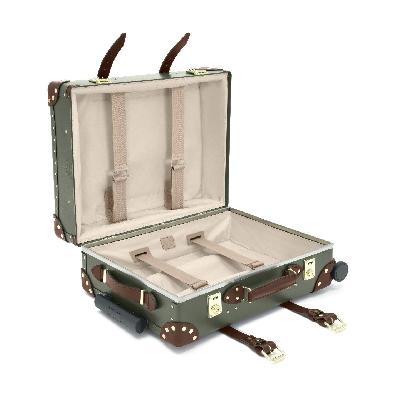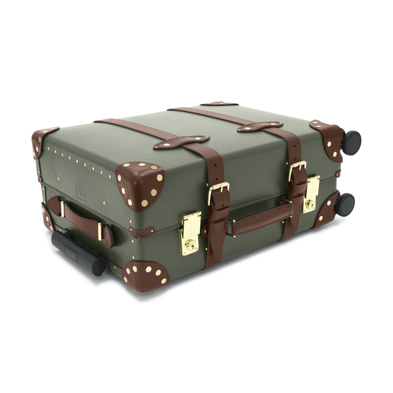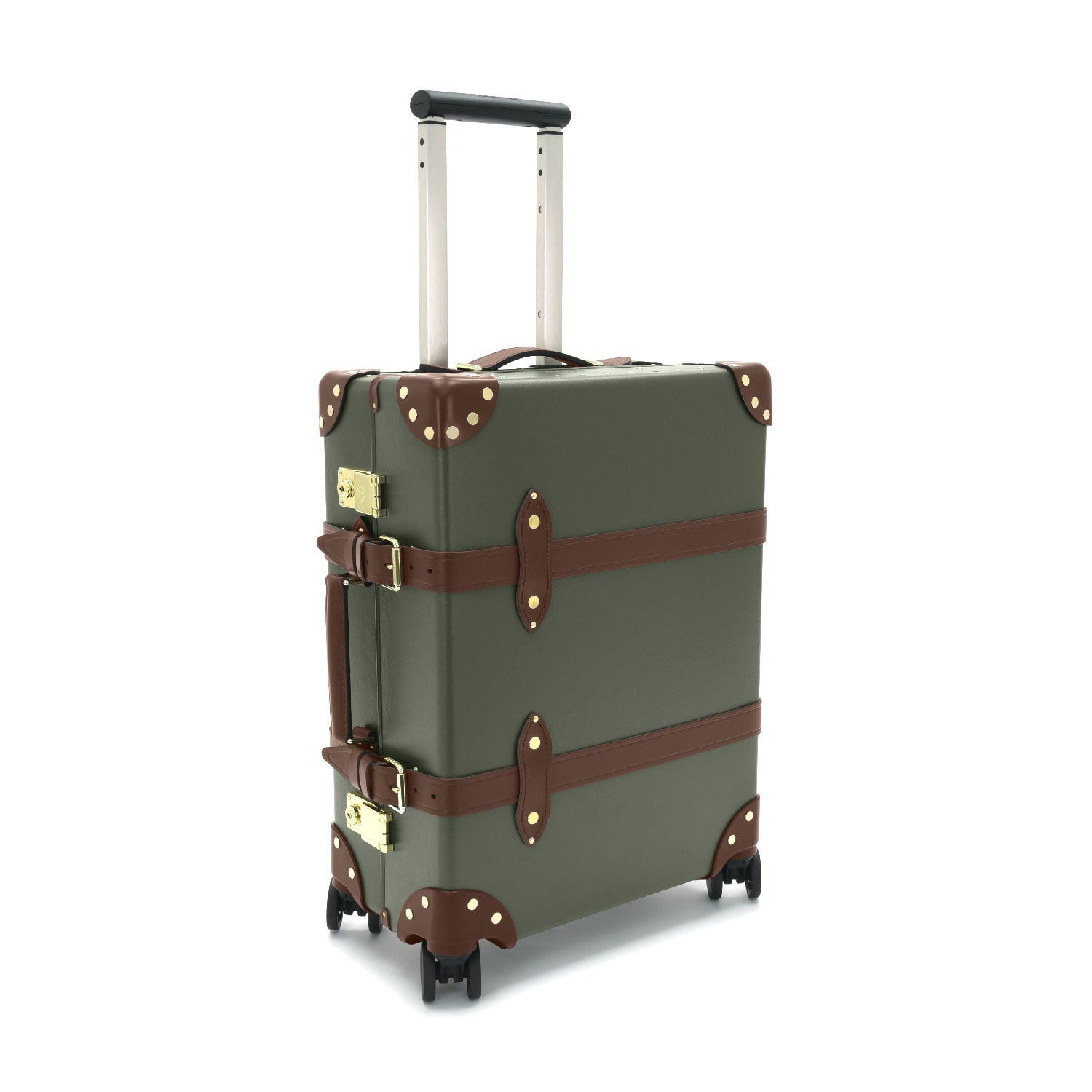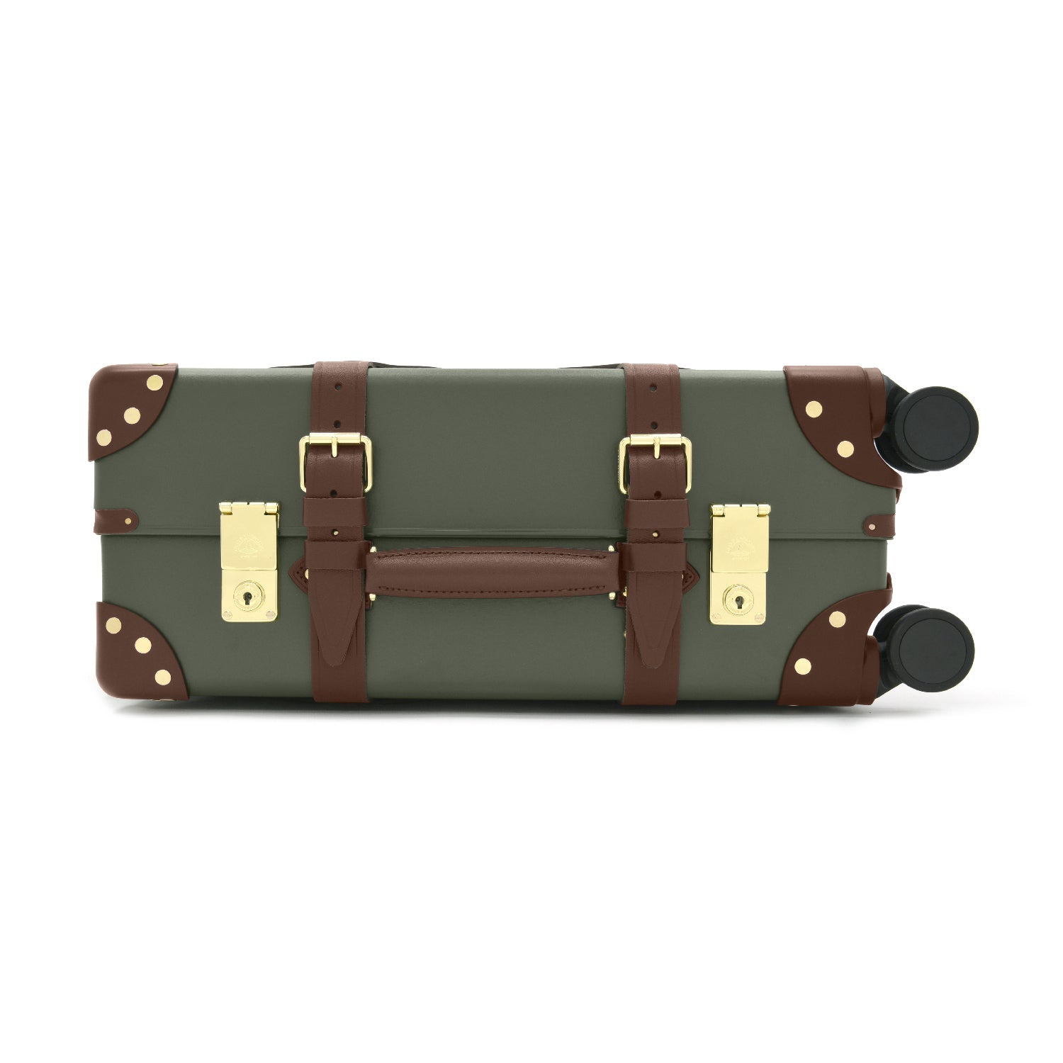 センテナリー グリーン/ブラウン コレクションの一つで、クラシックなブラウンレザーとゴールドのパーツが、深いフォレストグリーンによく映えます。グローブ・トロッターのセンテナリーを代表するデザインです。