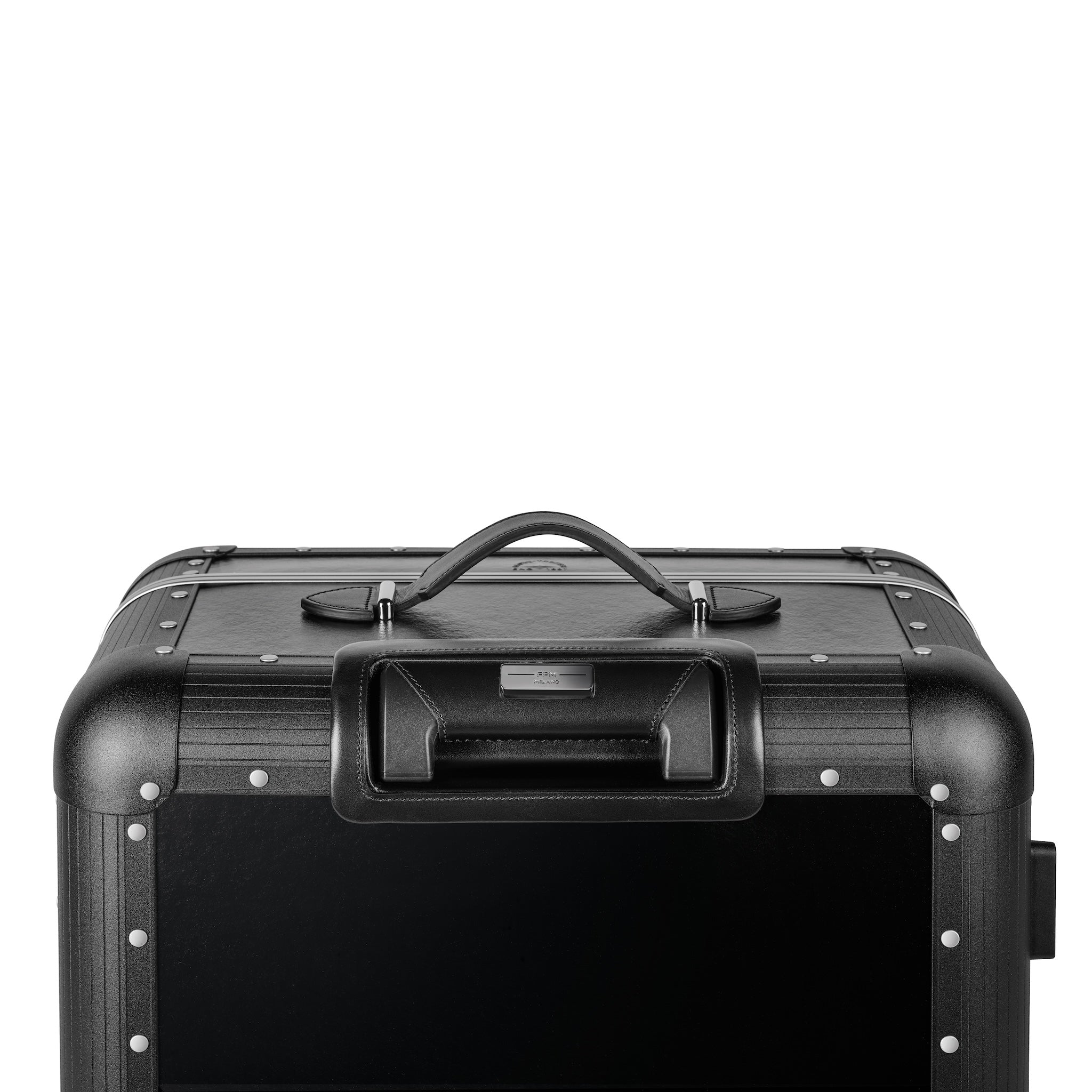 FPM Milanoを象徴する「Bank(バンク)」コレクションをベースに、堅牢なアルミニウムフレームと、 グローブ・トロッターの伝統を受け継ぐ軽量なヴァルカンファイバーボードを組み合わせ、 優れた耐久性とエレガントな佇まいを両立しています。