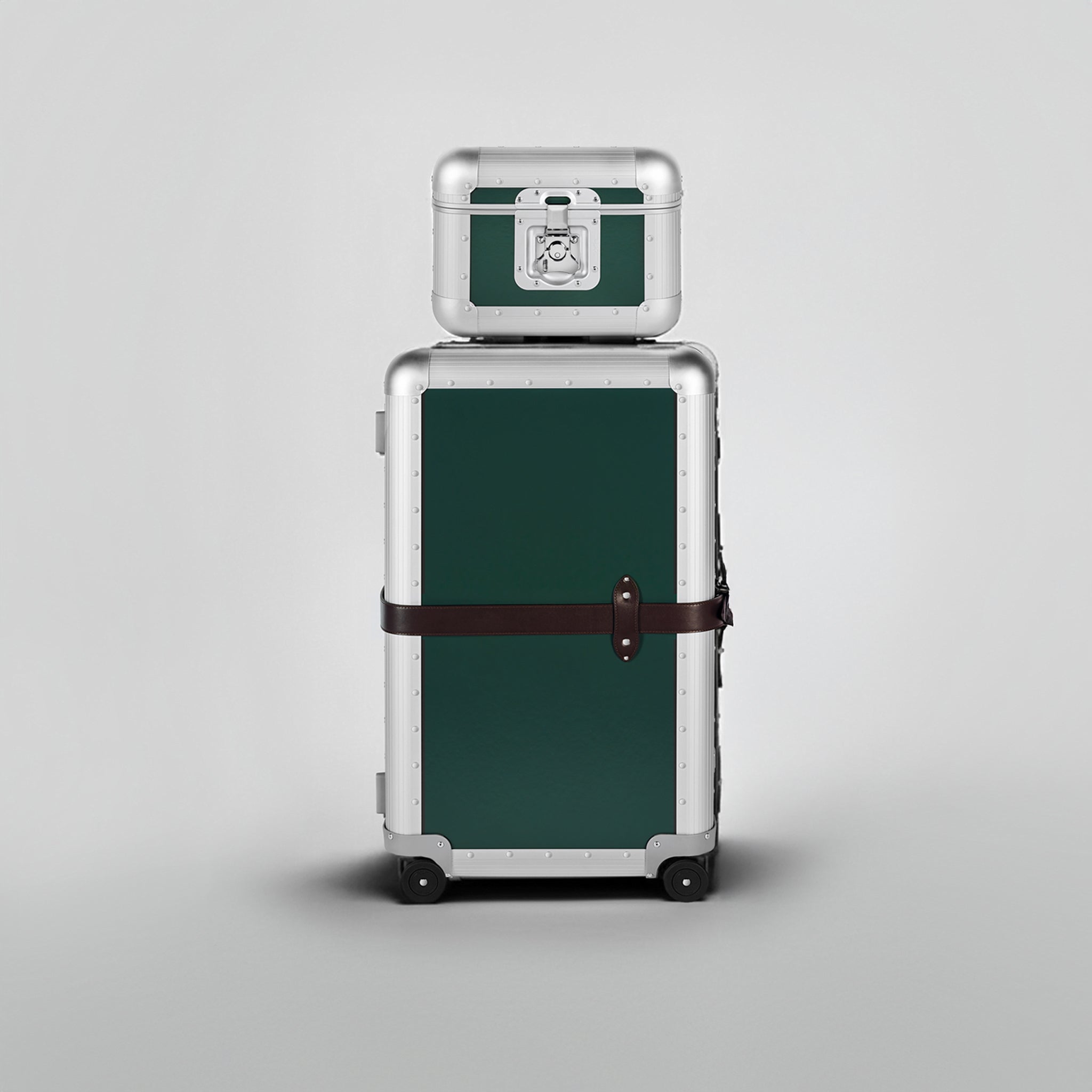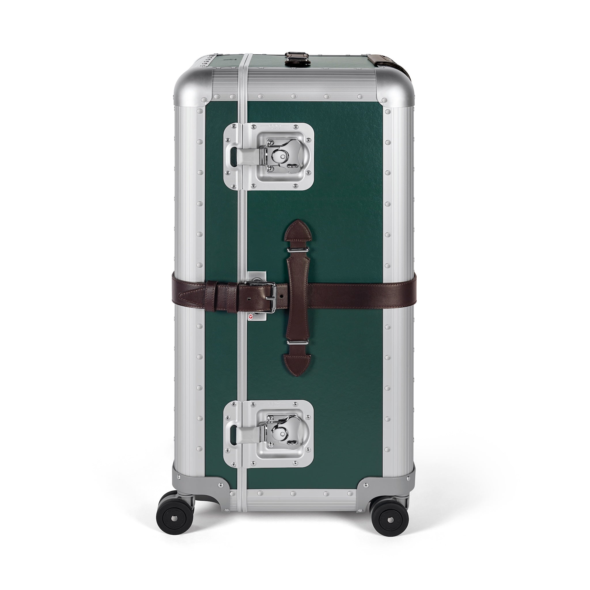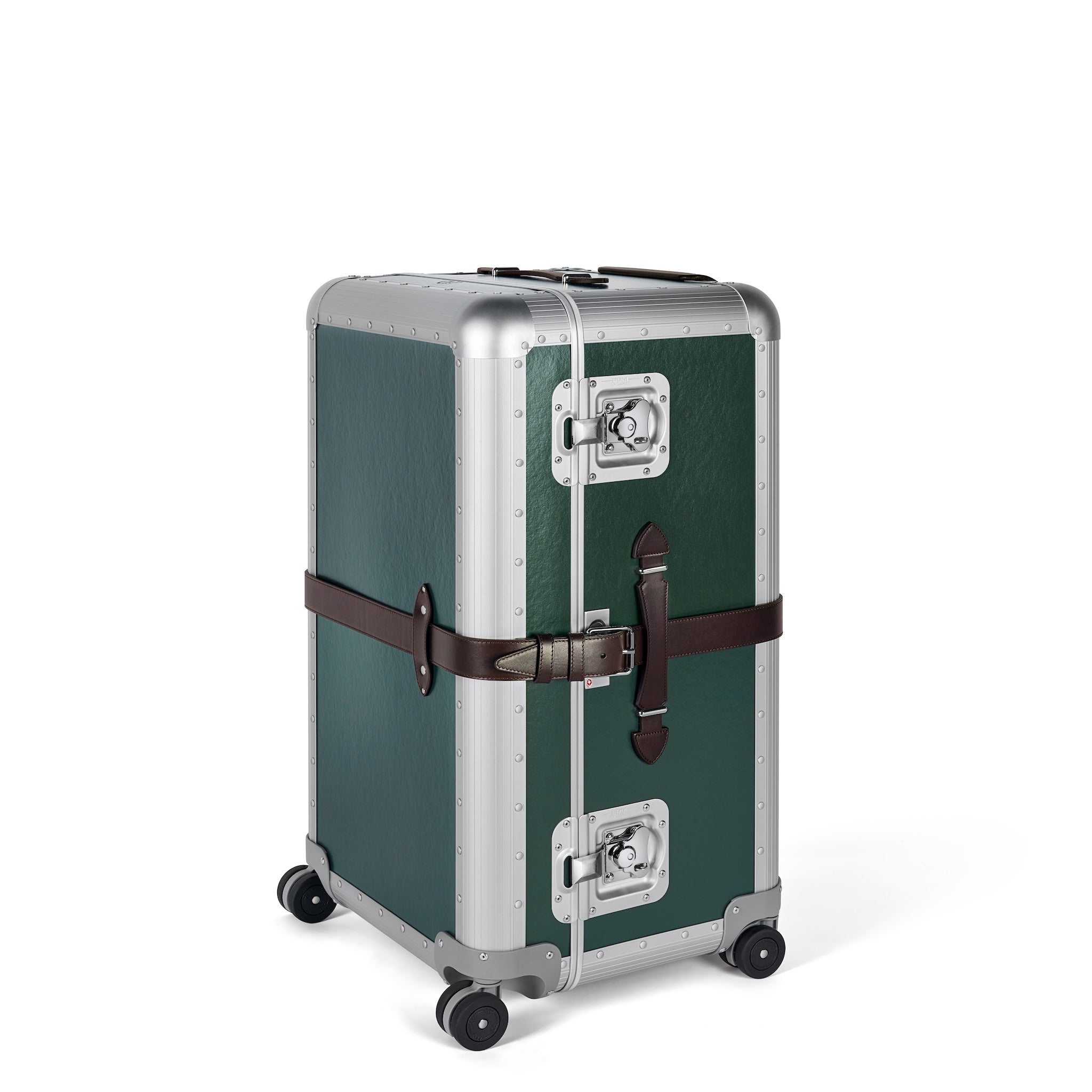 FPM Milanoを象徴する「Bank(バンク)」コレクションをベースに、 堅牢なアルミニウム構造と、グローブ・トロッターの伝統を受け継ぐヴァルカンファイバーボードのパネルを組み合わせ、重厚でありながら洗練された佇まいを実現しています。