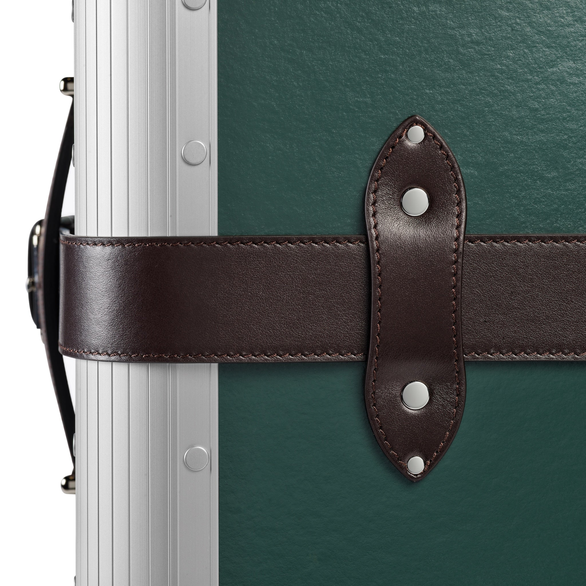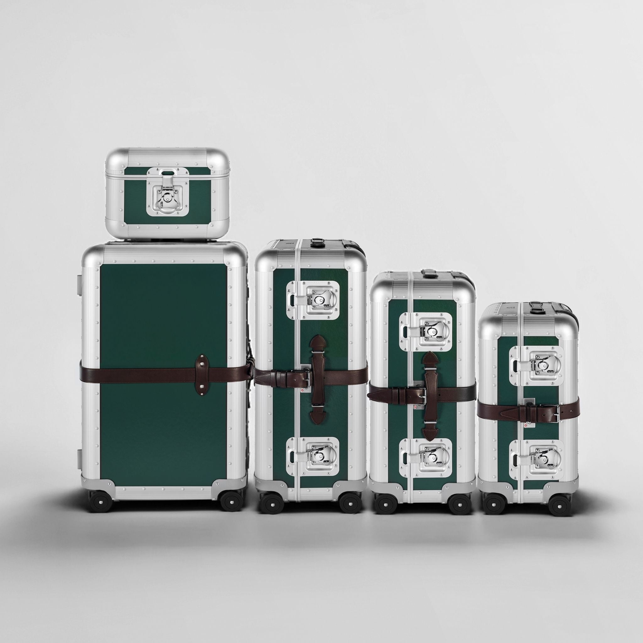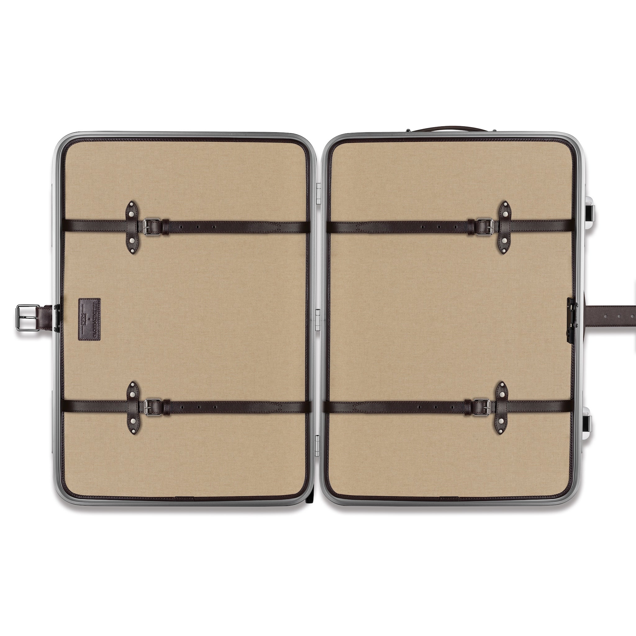 FPM Milanoを象徴する「Bank(バンク)」コレクションをベースに、 堅牢なアルミニウム構造と、グローブ・トロッターの伝統を受け継ぐヴァルカンファイバーボードのパネルを組み合わせ、重厚でありながら洗練された佇まいを実現しています。