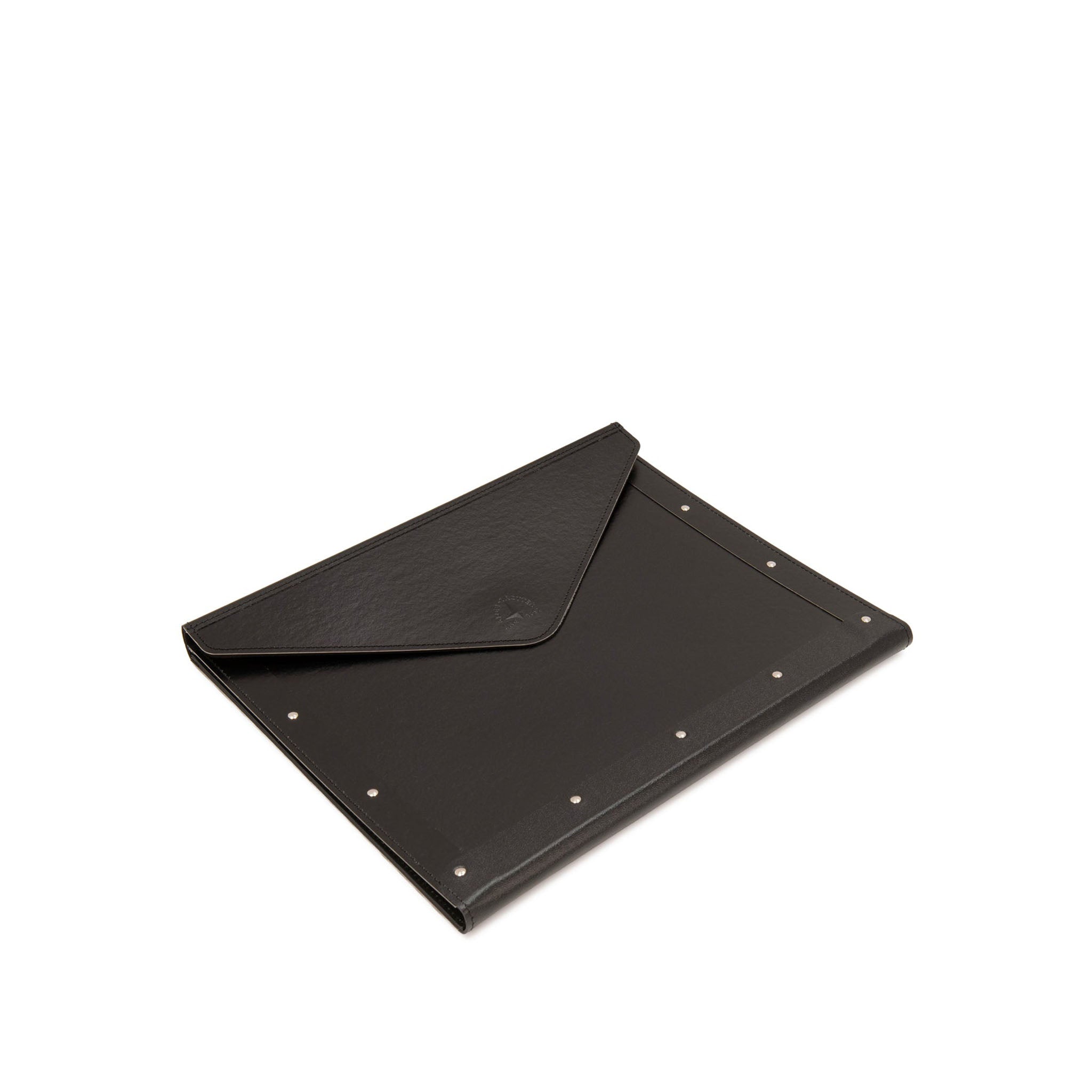 グローブ・トロッターのヘリテージデザインを、現代のビジネスシーンにふさわしく再構築したドキュメントスリーブ。英国ハートフォードシャーの工房にて職人の手で仕立てられ、ヴァルカン・ファイバーを本体素材に採用しています。